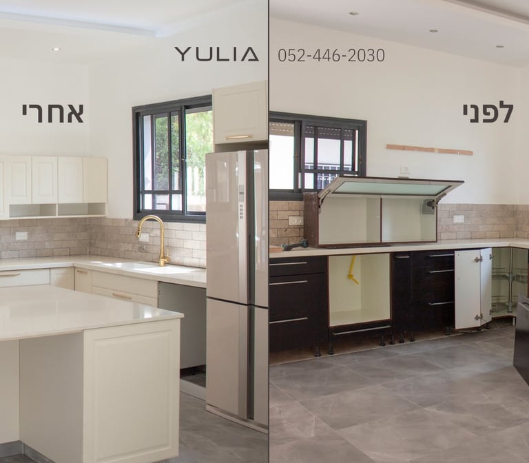 עם מעל ל-30 שנות נסיון, ביוליה עיצובים אנו מתמחים בתכנון ועיצוב מטבחים ויצירה של מגוון עבודות נגרות נוספות. בייצור כחול לבן, אנו משתמשים בשיטה מתקדמת המשלבת נגרות וטכנולוגיה חדשנית המאפשרת דיוק מקסימלי לכל פרויקט. אצלנו אין סיבוכים מיותרים או משחקים, התהליך קל, אישי ואותנטי גם בפרויקט הכי גדול ויוקרתי וגם בפרויקט הכי פשוט וקטן. אנחנו לא מתפשרים ומספקים לכם את הפונקציונליות המקסימלית בלי לוותר על העיצוב המקסימלי, והכל בדרך שהכי מתאימה לצרכים הייחודיים שלכם.