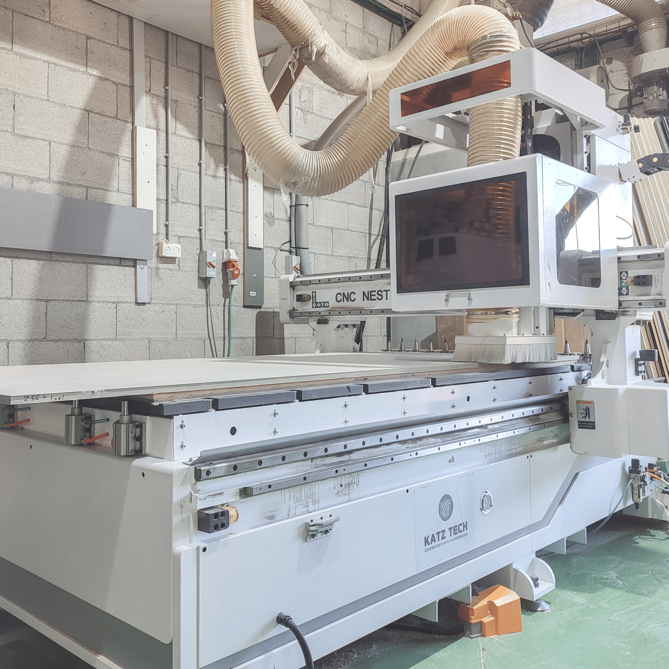 בעבר כשהגיע הזמן לחתוך את הפרויקט היו נגרים משתמשים בסימונים שעשו ידנית בעזרת מטר כדי לחתוך עם מסור ידני את העבודה הרצויה, תהליך שאיפשר מקום להרבה חוסר בדיוק. ביוליה עיצובים החלטנו להתקדם וכיום אנחנו עובדים עם מכונת CNC ממוחשבת וחדשנית שחותכת את כל הפרויקטים שלנו בדיוק של מחשב עד לרמת המיקרו מטר ומביאה לתוצאות ברמה גבוהה.