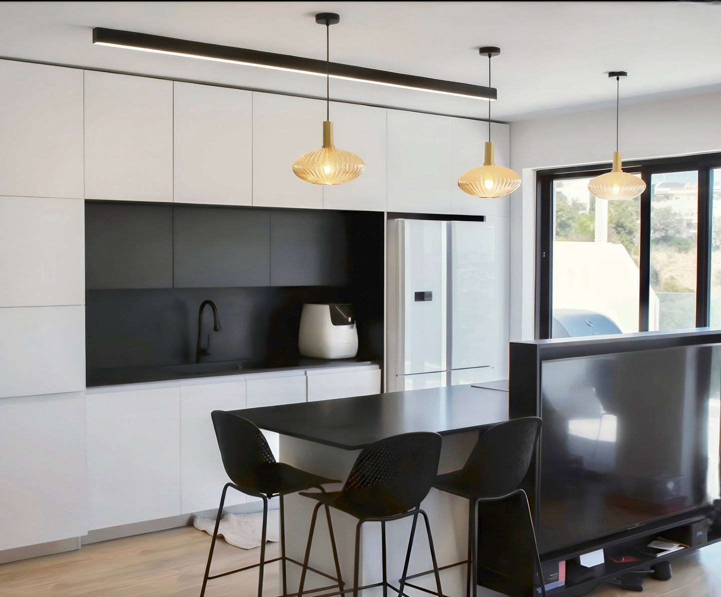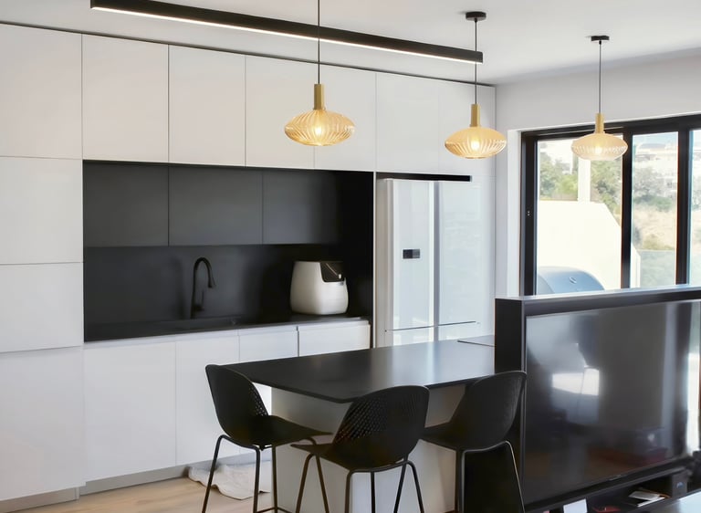 איחוד עיצובי חד בין שחור ללבן שנותן עומק לעיצוב המודרני.
