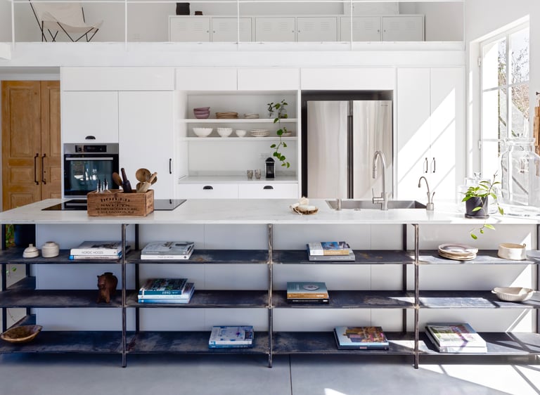מטבח מרווח, כפרי ומרשים שנעשה בצביעה עם אלמנטים מתכתיים