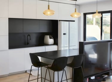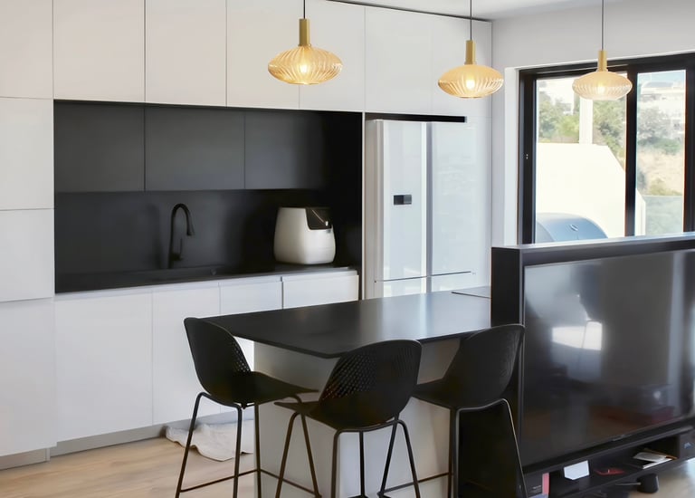 איחוד עיצובי חד בין שחור ללבן שנותן עומק לעיצוב המודרני.